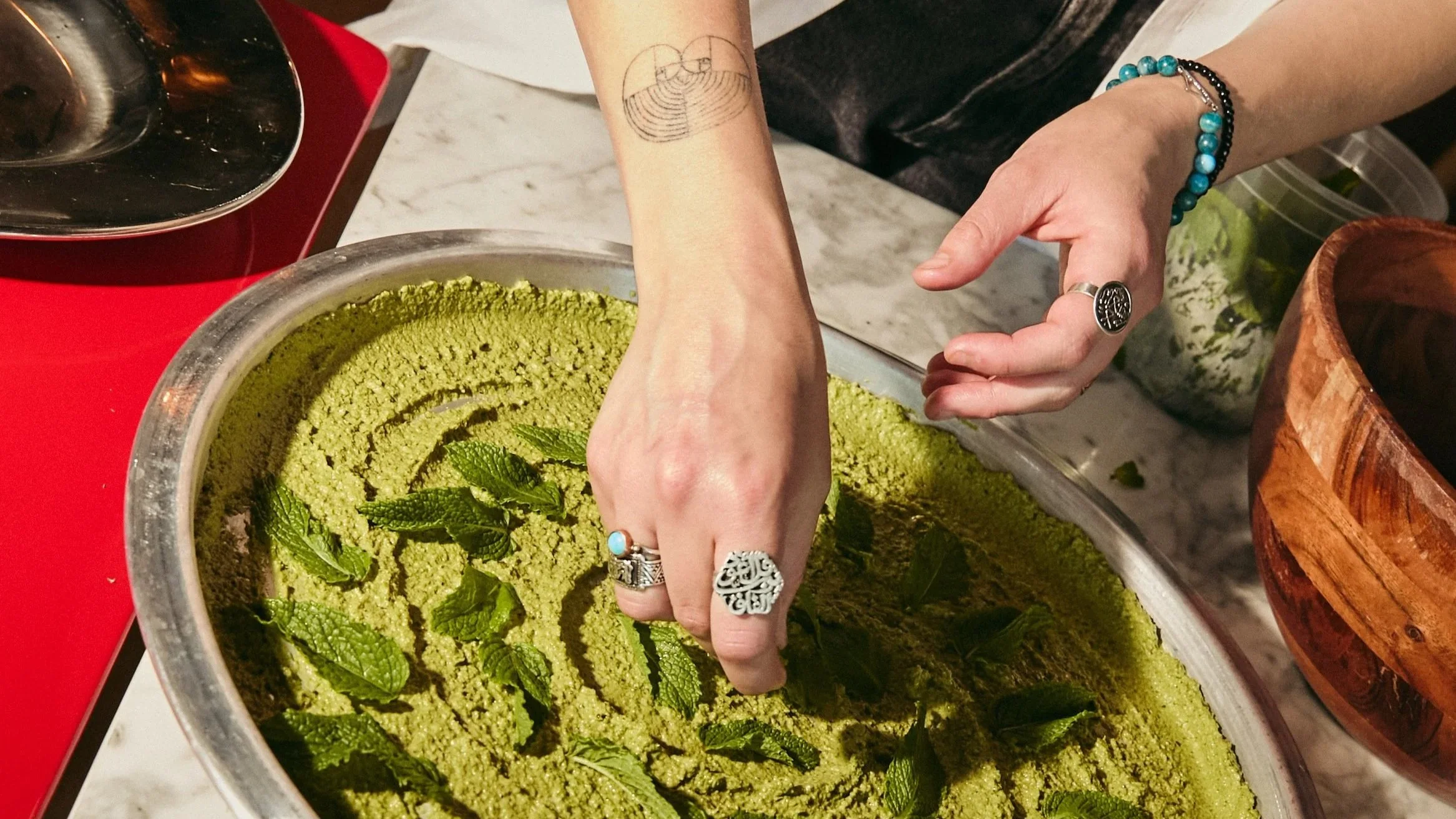 “Reflecting on the growing curiosity about Levantine cuisine, Nadia considers "how our people are so focused on preserving tradition, with many forces trying to erase our people and our culture, even giving our food another name." She's "interested in what happens if we are not needing to preseve and protect first, taking traditions and applying them to new ingredients or creative ideas." Nadia introduced Pierce to this idea of 'future palestine', a menu beyond borders where her heritage and Pierce's Armenian's roots could intermingle, creating a "sliver of a moment where we start to imagine what a liberated future could taste like."